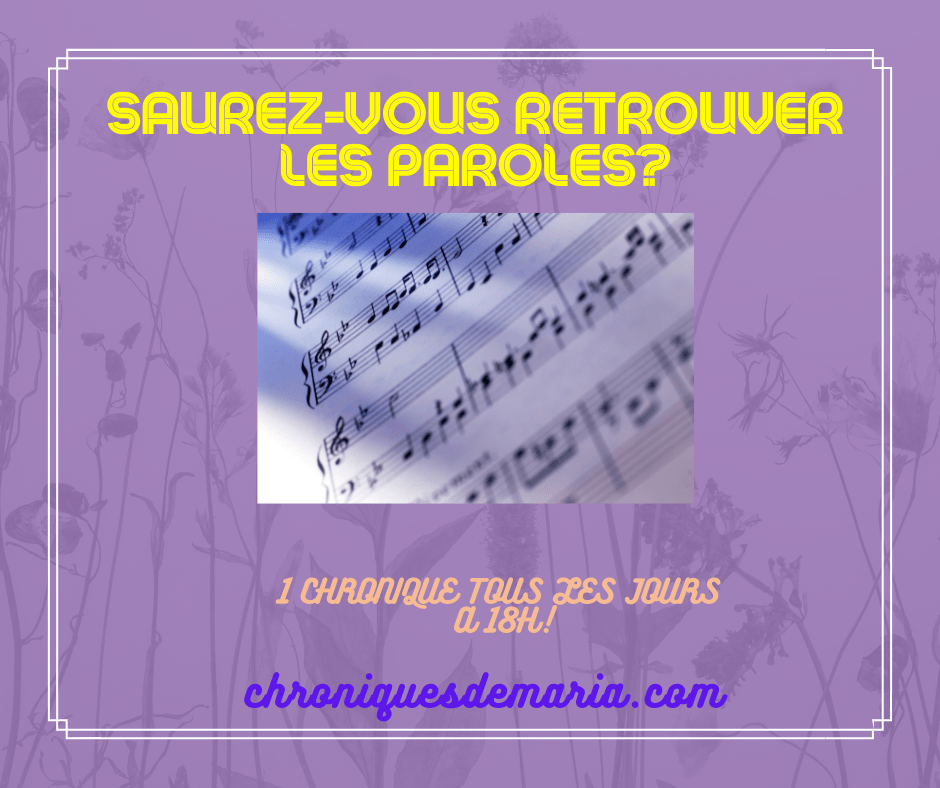 Comme je vous l’ai dit, j’ai besoin d’un peu de légèreté dans ma tête alors je me suis fait un petit délire avec ce poème confectionné avec des paroles de chansons connues (un peu adaptée parfois)! Si vous avez les références, laissez un commentaire et si vous voulez en faire à votre tour, allez-y!