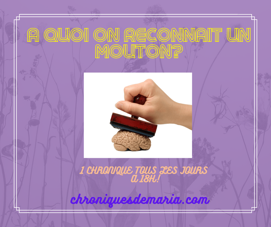 Après, ma chronique sur les complotistes (lien ici si vous ne l’avez pas lu https://chroniquesdemaria.com/2022/04/22/attention-aux-complotistes-ils-sont-dangereux/), je vous propose une chronique pour apprendre à reconnaitre un mouton si vous en croisez un! Je met au masculin mais un mouton peut être un homme ou une femme (pas de discrimination ici).