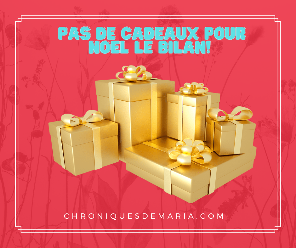 Le bilan est très positif pour moi et à priori, je vais garder ce mode de fonctionnement pour les prochains Noëls et même toute l’année vu que je me fiche aussi des cadeaux d’anniversaire!