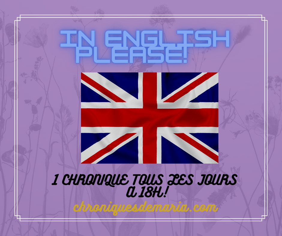 Vu l’image d’illustration, vous l’aurez compris : j’ai choisi l’anglais! La majorité de mes chroniques resteront en français parce que d’écrire en anglais, ça va être un challenge surtout que mon niveau d’anglais est un peu éclaté au sol (on ne va pas se mentir)! Mais pour progresser dans la vie, il faut savoir suivre son instinct et ses envies! Alors, je vais faire des fautes (un peu, beaucoup, passionnément ou à la folie) mais j’assume et je me lance! C’est le genre de choses dont j’aurais été incapable il y a quelques années!
