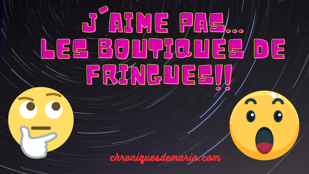 Aujourd’hui, j’ai fait un truc que je déteste faire : du shopping! Oui, c’est rare surtout pour une femme! Pour ceux qui ne me connaissent pas, je me présente : je déteste acheter des fringues, je déteste aller dans les boutiques de shopping (et je vais vous expliquer pourquoi), je commande sur internet uniquement quand j’ai besoin de vêtements (pas envie de finir en garde à vue si je me balade à poil) et la mode, je m’en tamponne le coquillard! Voili, voilà!