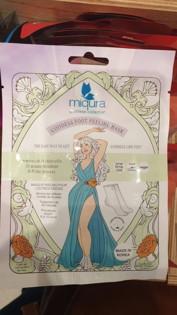 C’est un masque exfoliant pour les talons à laisser poser 1heure et demie. Au bout de quelques jours, les peaux mortes commencent à se détacher. J’avais déjà testé un équivalent chez Action et ça avait bien marché! A voir!