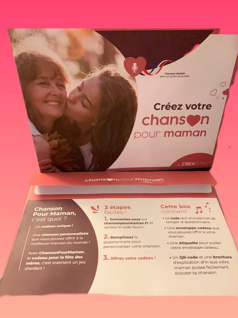 - La chanson personnalisée coûte 29€. Dans le seul prix de 29 €, il est compris la chanson personnalisée, la box, l’enveloppe cadeau que vous pourrez donner à votre maman, ainsi qu’une carte cadeau où vous pouvez écrire un mot si vous êtes inspiré.