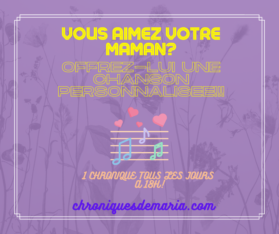 - Dans un premier temps les chansons seront uniquement pour les Mamans mais à long terme tous les événements heureux seront disponibles telles que les mariages les naissances, les anniversaires… Quand je dis à long terme c’est, je l’espère, d’ici le dernier trimestre 2022.