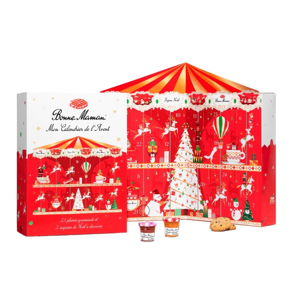 Finalement, j’ai craqué sur le calendrier de l’avent Bonne maman! Il contient des petits pots de divers parfums de confitures, des infusions et des petits biscuits! Comme ça, je pourrais découvrir des parfums de confitures que je ne connaissais pas (et si je n’aime pas certains parfums, comme les pots sont petits : pas de gâchis!) et j’espère faire de belles découvertes! A chaque produit, je vous donne mon avis!