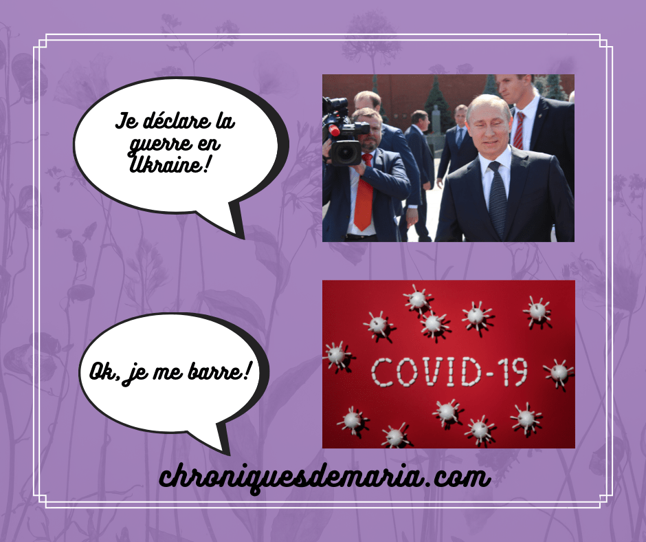 Là encore, on voit la manipulation des médias où Poutine est le vilain méchant et tout le monde prend fait et cause pour les pauvres Ukrainiens! Je me répète, je ne cautionne pas la guerre, ni Poutine et je suis évidemment pleine de compassion pour toutes les victimes passées, présentes et à venir de cette guerre (côté ukrainien mais aussi côté russe)! Mais on voit l’hypocrisie de certains qui mettent tous les russes dans le même panier que leur dirigeant alors que c’est juste une opération de communication!